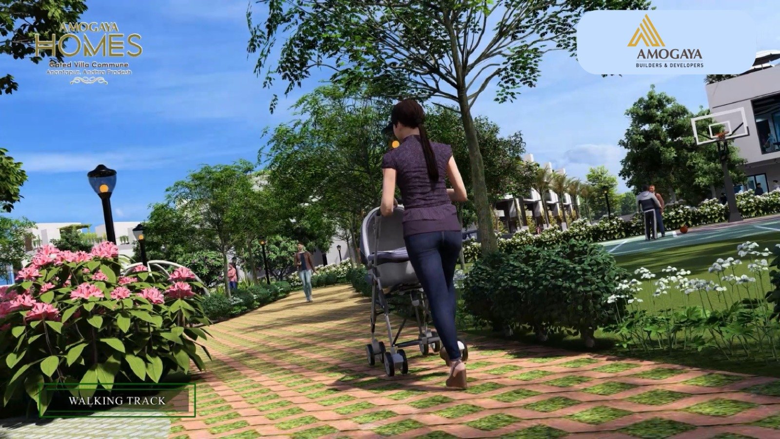 The walkways and roads inside the premises are decorated with flower plantations and trees on both sides of the road. The decorative street lighting gives the aesthetic feel and heightens the beauty of the place at night and day. The manicured parks and gardens with designated children’s play-area makes it quite a pleasure for children and elders too. In AMOGAYA HOMES we have blended it perfectly and harmoniously. .